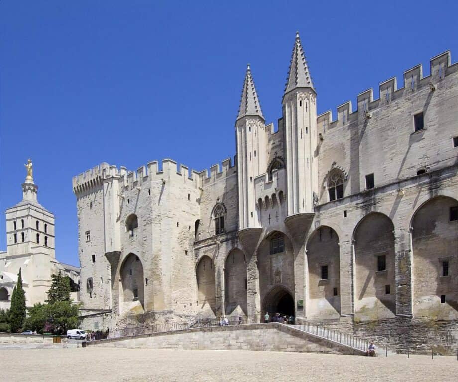 Clement’s successors built the Papal Palace where walls were sometimes three metres thick and where, in the banqueting hall, guests sat against the walls so that they could not be stabbed in the back. These were dangerous times. Only the Pope was permitted a knife to cut his meat.